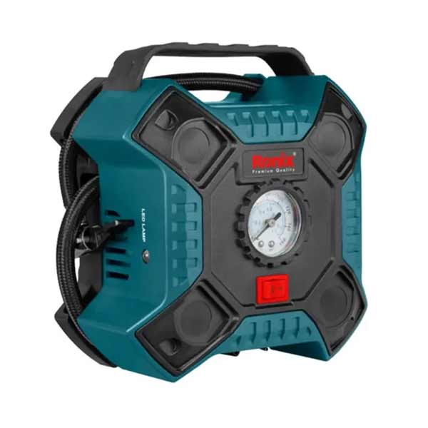 مینی کمپرسور رونیکس مدل RH-4263 مجهز به موتور و سیلندر مستحکمی است که میتواند با حداکثر فشار 160 PSI هوا را فشرده و خارج کند. این مینی کمپرسور با اتصال به فندکی خودرو و ولتاژ 12 ولت DC کار میکند.