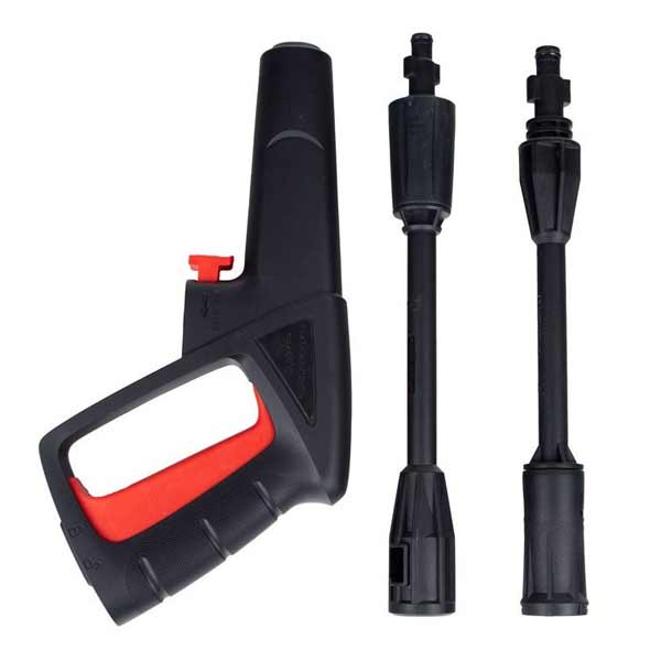 مخزن ترکیب آب و مواد شوینده – دو عدد لنس – تفنگی – رابط ورودی آب مجهز به فیلتر – شیلنگ فشار قوی – سوزن تمیزکنندهی نازل- دفترچه راهنما