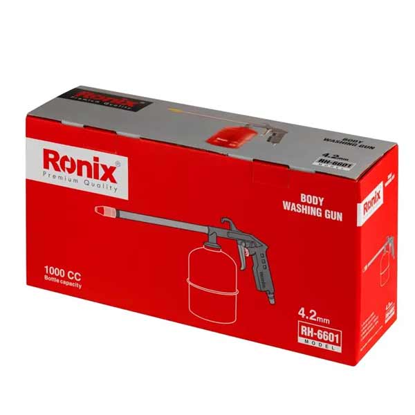 نازل برنجی قابل تعویض این دستگاه از سایز 4.2 میلی متر برخوردار است و می تواند در فعالیت های مختلف تمیزکاری، ضدعفونی کردن، فرو نشاندن گرد و غبار و … به خوبی موادی مانند بنزین، کف و سایر حلال ها را با فشار زیاد اسپری کند. از دیگر ویژگی های مدل RH-6601 رونیکس سرعت پاشش بالا و قابلیت چرخش به دو طرف است که امکان تمیز کردن آلودگی ها، چربی ها و روغن ها را از روی موتور و ماشین آلات را برای کاربر فراهم می کند.
